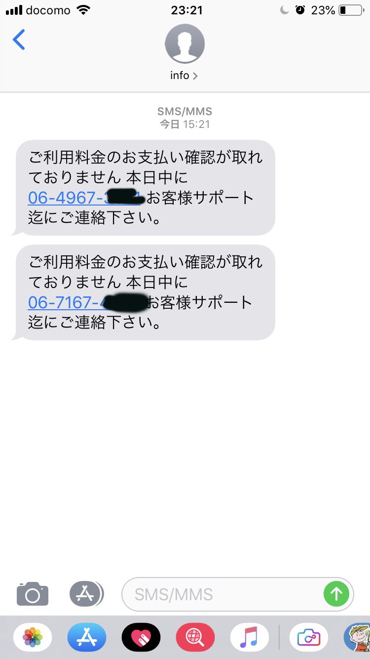 特殊サギの被害が出ている昨今ですが、個人のスマホにも来ましたよ。こんなに早くなのか、やっとなのかはよくわかりませんが。