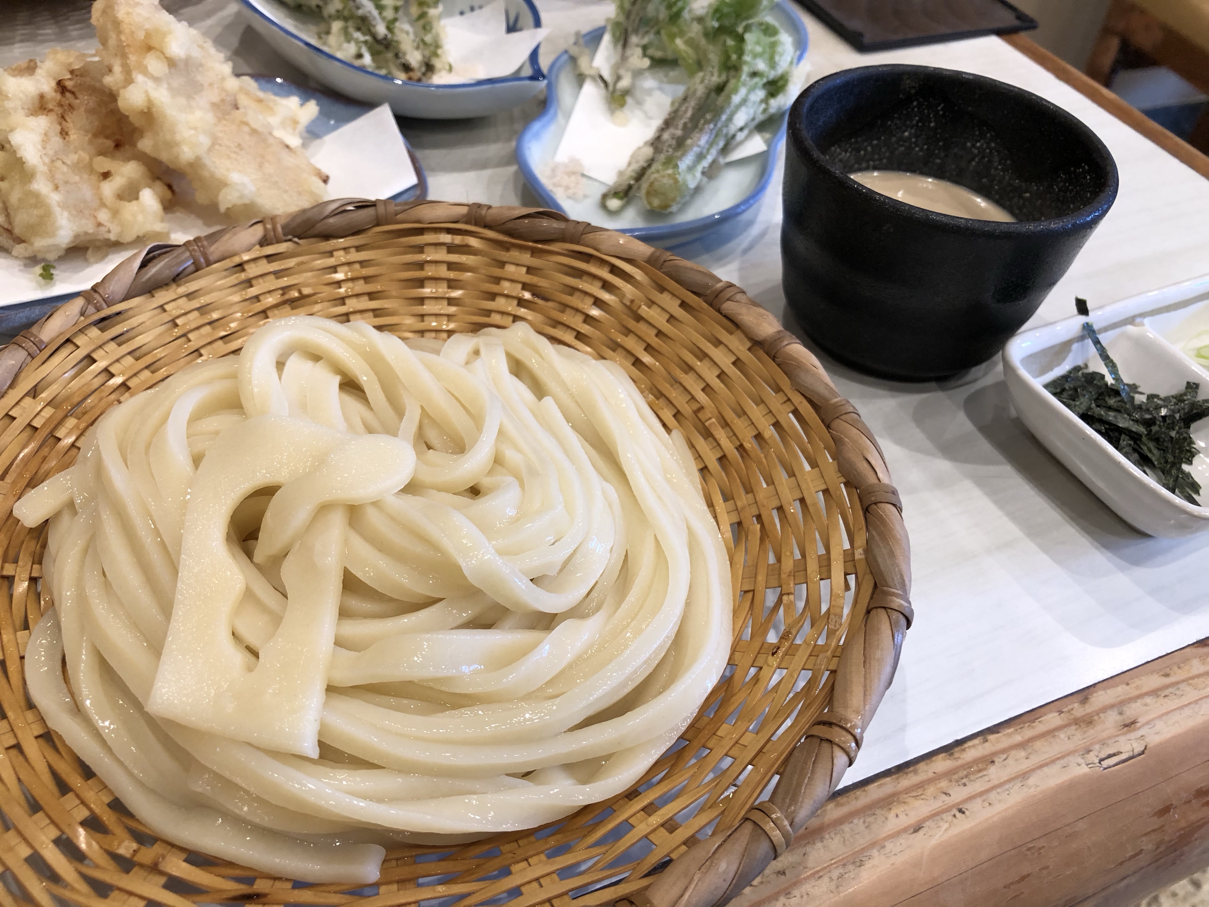 電車に揺られて1時間半、目的地の駅に到着してお昼ごんを食べています。